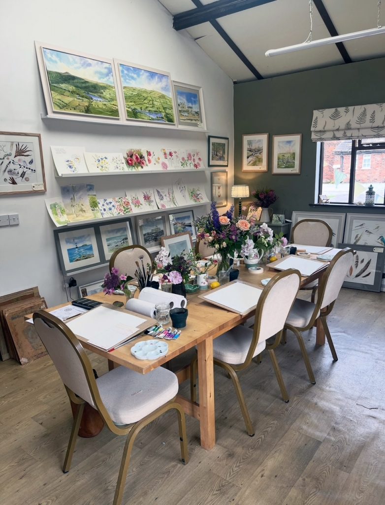 Allie graduated as an illustrator, living and working in London for five years for various magazine houses, design and advertising agencies. Missing the fresh air, Allie returned to leafy Cheshire, giving her the chance to focus on the country side and nature that surrounds her. Whilst creating paintings by season, favourite landscapes, florals and produce, sparkling seascapes and wildlife. Allie also occasionally runs watercolour workshop small groups from her light and airy, rural studio and also larger groups at the spectacular Capesthorne Hall and Cheshire Clay Studios.